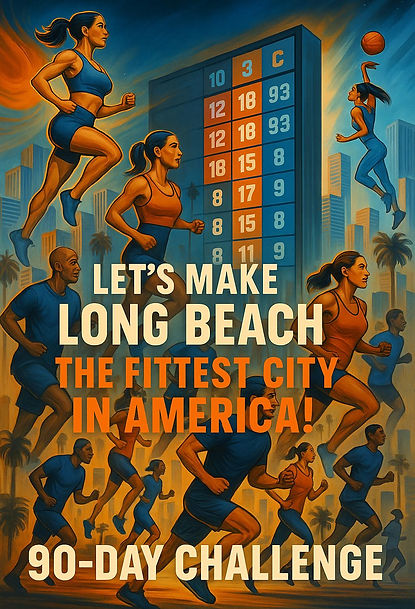 The LBCityFit90 Challenge is a city-wide fitness competition that encourages healthy habits, teamwork, and friendly competition. Participants compete in micro-challenges within their teams while working toward measurable fitness improvements. Teams will be organized by city districts. The challenge culminates in a Grand Finale Event where top teams and individuals receive cash awards and other prizes.